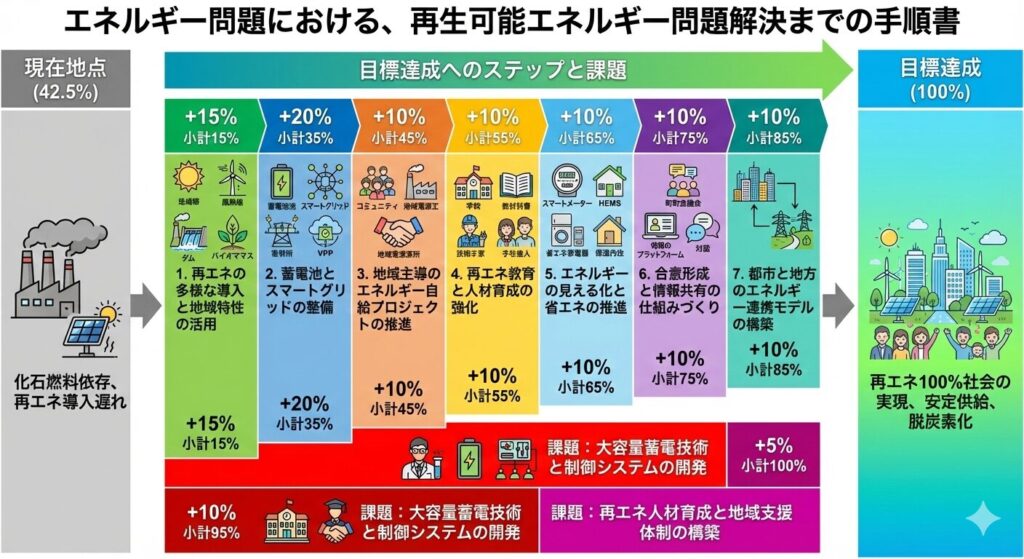再エネ導入を支える人材の育成と、地方自治体への技術支援体制の整備が不可欠。教育機関と連携し、専門職の育成と地域支援ネットワークを構築する。