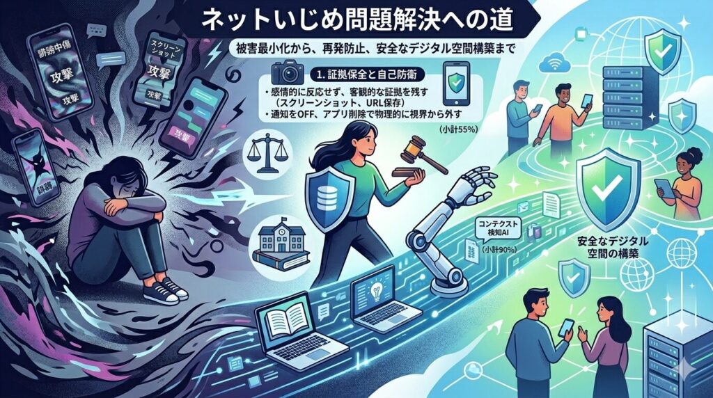 ネットいじめは、デジタルの利便性の裏側に潜む深刻な社会病理です。一度拡散された情報は完全に消し去ることが難しく、被害者の精神に深い傷を負わせます。しかし、テクノロジーと法律、そして個人の意識改革を組み合わせることで、この問題は制御可能なレベルまで抑え込むことができます。本手順書は、被害の最小化から、再発防止、そして最終的な「安全なデジタル空間」の構築までの道筋を示すものです。