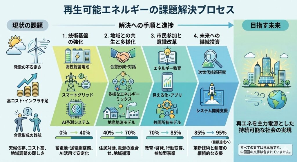 さらに、地域住民との合意形成が難航するケースもある。これらの課題を乗り越えるには、技術革新と社会的な仕組みづくりが必要不可欠だ。