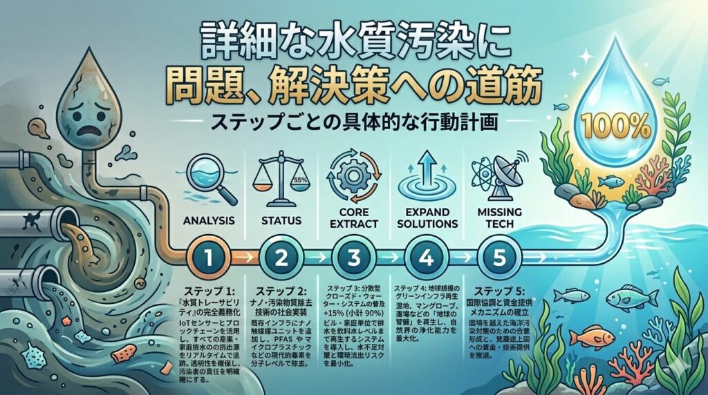 水質汚染は、生命の源である循環システムが、人間の経済活動によって生じる「処理しきれない副産物(毒素)」によって目詰まりを起こしている状態です。かつての「目に見える汚れ」から、現在は「分子レベルの目に見えない汚染」へと深化しており、その解決には技術的なブレイクスルーと、社会システムの根本的な再構築が不可欠です。